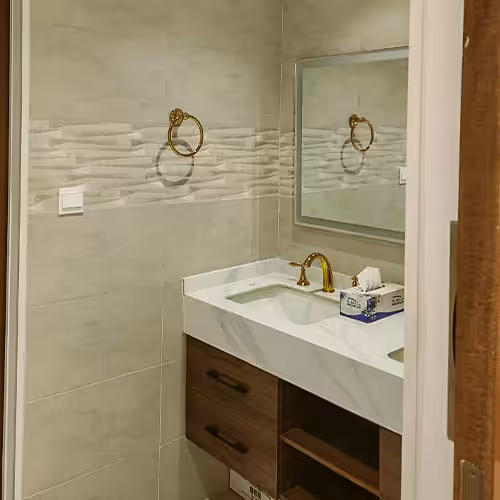 • full interior ceiling decoration, high-quality hotel bathroom finishes.